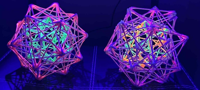 ■綿棒多面体で正6面体-正8面体の系(ベクトル平衡体)から正12面体-正20面体の系への簡単なシフトをなし、その後は小星形12面体を中心核に大星形12面体、そして正12面体へと黄金比で連結する立体を制作。また5芒星12面体-正12面体-20-12面体と連結する構造体を制作する。ベビー綿棒が大活躍。