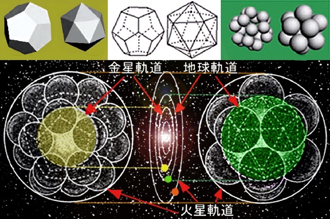 ■3惑星軌道殻と5重対称性のプラトン立体である正12面体と正20面体の美しい関係。