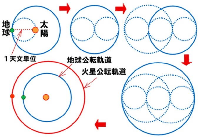 ■1天文単位と地球と火星が軌道が示してくれるベシカパイシス。かなりシンプル。