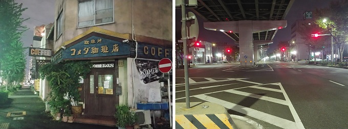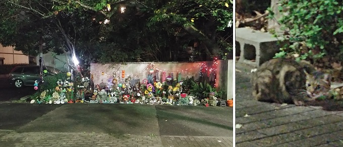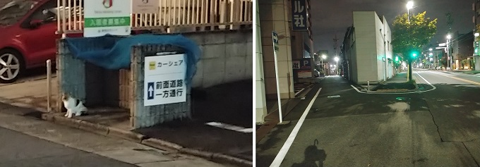 ■3■早速道端に猫。本当に夜は猫の領分だ。ちょっと腰が痛い。歩き過ぎかと思っていたが、腰痛には1〜2時間歩くのが良いという説も。どっちでもいいけれど、都合の良い方を採用。腰は月と要。要は西と女。女はくノ一。忍者は刃と心…。歩き続けると勝手に転がる自動連想の波もふと止まる時が来る。