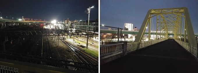 ■7■線路を跨いだ後も道なりに歩いた。最後に1回だけスマホで検索した。なんとこのまま進めば直ぐに太閤通駅だった。ドンピシャ。始発後の2番電車に乗る。御器所に着いて地上に出た途端、街路灯が一斉に消えてハッとした。ああなるほど、6時ちょうどに消灯するのか。25年居て初めて気が付いたよ。