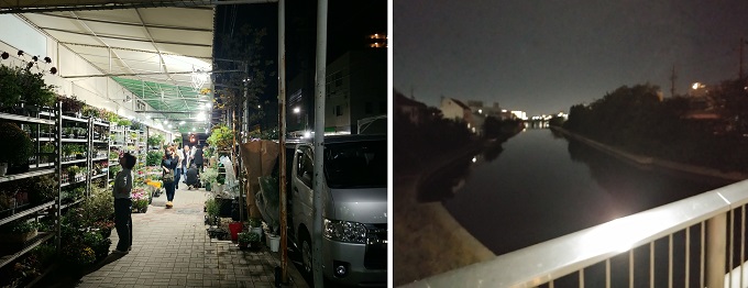 ■5■5時前の街中でよもやの雑踏だ。看板を見ると生花市場の店々と仕入れの人達らしい。沢山花を積んで次々と車が出て行く。立ち尽くすと邪魔になりそうなので、足早に通り抜けたが、あんなに大量の生花が次々と売買されているのを始めてみた。それにしてもこの道なり歩きは真直ぐのまま途絶えない。
