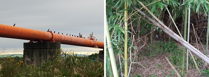 ■3■太閤橋のたもとには、死人を埋めたとしても見つからないほど(止めなさい!)密生している竹林がある。それらの周りを葛の群れが覆い隠し、薄やセイタカアワダチソウが空間を奪い合うようにひしめいてる。もし上次元というものがあり、そこから眺めたら私たちも同様に見えているのかもしれない。