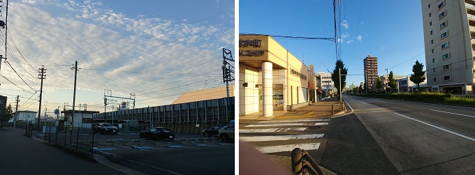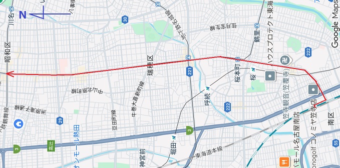 ■1■気温13℃、体感11℃か、寒くなったものだ。今日のスタート地点は名古屋国際高校の東端だ。昨日より信号1つ、250m東から道なりに南進を開始する。日の出はまだ先で、家々の灯りも消えたまま街灯だけが目に入る。闇の底の街中で何を考えても見えるものはみな、自分の頭の中の出来事や妄想だけだ。
