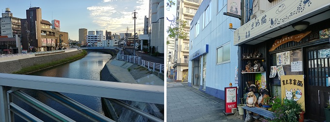 ■5■野並橋で東海通と地下鉄桜通線をくぐり抜けると、鳴海クリースシステムと片平ふれあいセンターの建物が見えてきた。そうだ、対岸の道も以前歩いたことがある。そして天白橋。ここも信号が無いので下をくぐろうと橋桁におりた。猫が3匹いた。ここで餌付けされている子たちでおっとりしている。