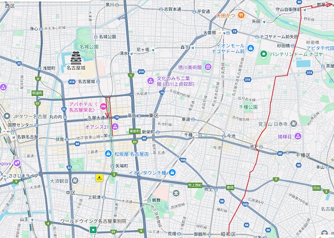 ■7■乗り換えだろうか、途中の大曽根で客の半分ほどが降車した。終点の栄町駅からほぼ無人の栄地下街に出てスマホの万歩計を見ると、まだ8700歩だった。そのまま久屋大通駅から桜通線に乗り換える前に、折角だから久屋大通公園の北端の外堀通りまで往復してみた。寒い夜明前だからか人影が全くない。