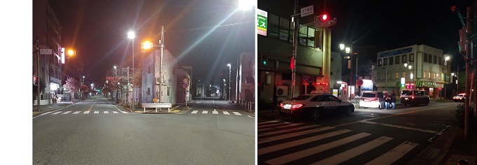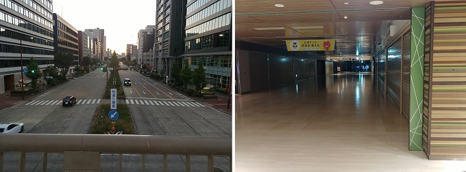 ■3■片側3車線の道も4車線の道路も、ほとんど車がいないので堂々と歩く。大きな交差点が赤信号でも、2〜3台の車が過ぎれば人間最優先の道になる。目を閉じればさらに車の音に敏感になる。隣の信号が青になり高速で近づいて来る車群の音は、夜の湘南の海で目を閉じて聞いた潮騒のように少し怖い。