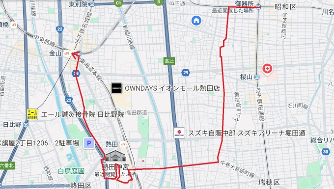 ■7■ありがとうね熱田神宮、ありがとうね出会った人たち。この終助詞「ね」の親近感。丁寧にお参りしてから西に抜けて、国道19号を北進する。途中夜寒町にあるY字路を右に入れば、そのまま金山駅に続く。夜寒の里は歌枕にもある。古代の熱田神宮は左右を海に面した高台の端で、さぞ寒かったのだろう。