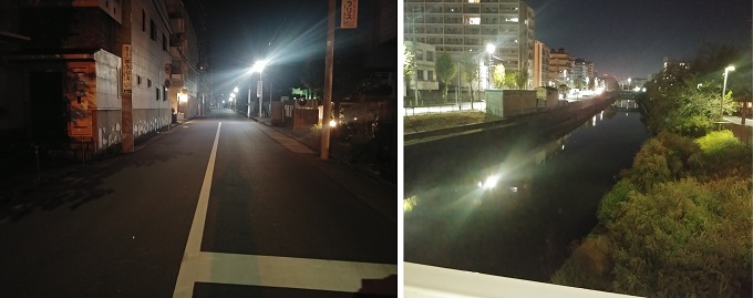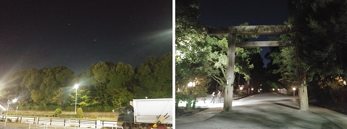 ■1■午前4時半、気温8℃、体感6℃。御器所駅交差点から西にスタートし、4つ目の角を左折。そこから昨日の道筋より150mほど手前を今日もほぼ道なりに2.5kmホほど南下する。暗い街中を一人進むと、目覚めしなの自己他者問題についての妄想像の続きが沸き上がってくる。頭上には月齢21の半月と木星。