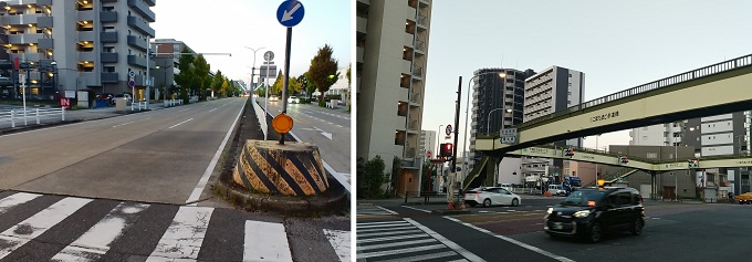 ■1■名古屋は広く直線的な道路が多い。その多くは80年前に市の中心部が焦土と化した後、復興時に大胆な都市計画に基づき、片側数車線の広い道路が縦横に走る街並みが形成されたからだ。しかし時々斜めで細いがそれなりに真っ直ぐな道が、広い道路に寸断されているのを見かける。うちの近所の道もだ。