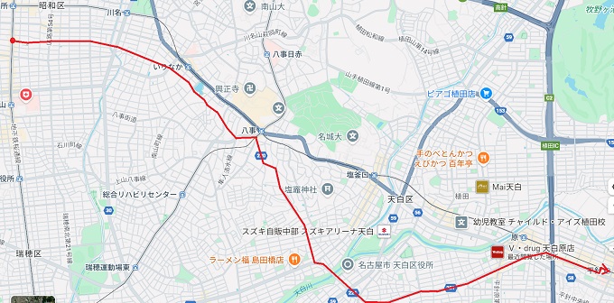 ■1■午前4時半、9℃、体感7℃。今日は御器所駅交差点から南に6ブロック先の交差点から東にスタートだ。ここから住宅街を道なりに進んでまず八事までいく。途中、鉄格子の中央分離帯がある上下4車線の県道30号に行き当たるが、車皆無なので乗り越えて進む。良い子は絶対真似しちゃあ駄目なやつだ。