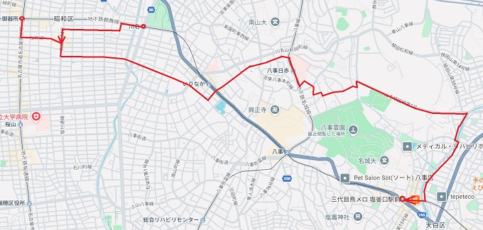 ■9■昭和警察署手前の赤信号で、車も人も通らないのにじっと待つ人がいた。無視して渡るのも憚られたので、1本裏道にずれて歩く。なんとこの道の方が、主要幹線より一直線だった。玄関に辿り着くと、10338歩だった。なんだよ、歩数合わせかよ。ポケットの中のウォーキングライトが少し恥ずかしい。
