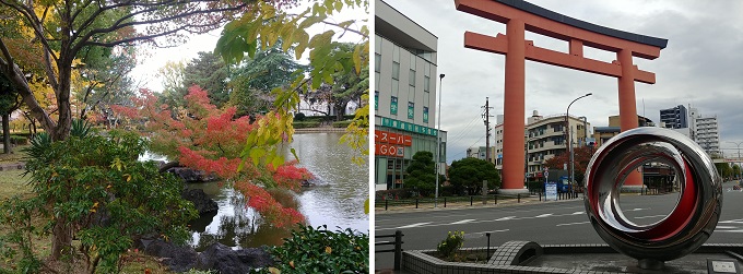 ■7■地下鉄中村公園駅まではあと約1.5kmだが、途中に中村公園があるので立ち寄った。豊臣秀吉の生誕地に創建された豊国神社、加藤清正が出陣時に必勝祈願をした八幡社、初代中村勘三郎生誕記念碑、名古屋競輪場その他が集まるワンダーランドだ。毎日落ち葉を掃き集める人たち。健康散歩する人たち。