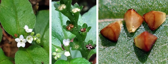 brevipes>という学名を持つムラサキ科キュウリグサ属の多年草の名だ。本州・四国・九州の山地の水辺や湿地などに生育し、5〜6月に白く小さな花を咲かせる。ここで引き合いに出したのはこの実も4面体になるからだ。