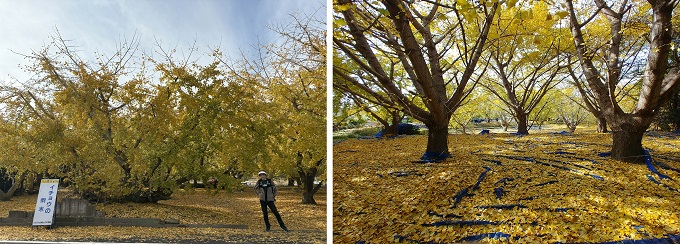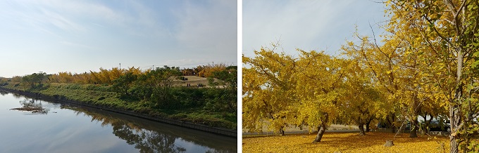 ■1■春の吉野の山桜と秋の祖父江の銀杏は老後のために取っておいたのだが、もう他者視線的には老後でOKだろうから、今日は名古屋市を飛び出して、愛知県西北端にある祖父江町に行くことにした。2005年に稲沢市に編入されていた。祖父江町は銀杏が11000本以上り、この時期はあちこちが黄に染まる。