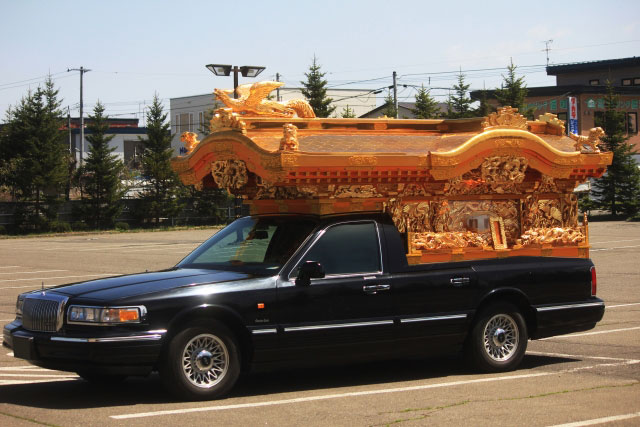 (※)かつては霊柩車の中でも70%以上の割合を占め、全国で1,000台以上が走っていた。今では台数も出動回数も激減していて、これに代わったのが、見た目が高級外車とあまり変わらず、過剰な装飾を行わないシンプルな「洋型車」だ。2009年には洋型が宮型を上回り、現在では洋型が大勢を占めるようになった。