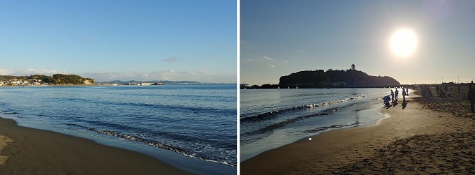 ■5■橋の袂から東海岸の砂浜に降りてみる。コスプレをした若い子たちが、三々五々海や島を背景に自撮り撮影している。その人数が異様に多い。調べてみたら今日12月6日は「江の島コスプレ祭」で、撮影スポット・服装の露出度・女装・血のり禁止など諸ルールのある有料イベントだった。時代感覚を修正した。