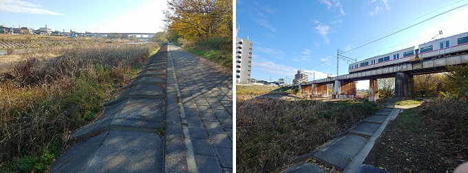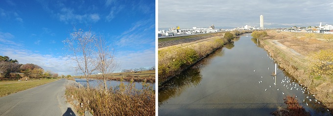 ■1■午前8時半、3℃、体感2℃。明るいが寒さは厳しい。ラッシュアワーの真っ只中。今日は鶴舞線庄内通と名城線砂田橋の間を歩く予定で、御器所駅の鶴舞線で上下先に来る方に乗ることにした。結局八事経由の砂田橋がスタート地点となる。先ず北上して矢田川に掛かる宮前橋の袂から川沿いに下り行く。