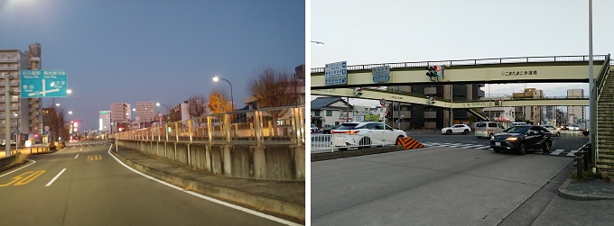■5■先日とは逆の方向から、ループ状の「ごまたまご歩道橋」がある古出来の交差点に出る。ここから戻って御器所まで環状線でループする。loopは好きだがLUUPは嫌い。スマホ見ながら信号待ちするサラリーマン。赤ちゃんを宝物のように大事に抱く女性。ゆっくりゆっくり杖を突きながら朝散歩をする老婆。