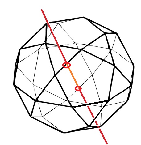 ■5■だがベクトル平衡体の軸のある線の両側は正3角形と正方形なので、半回転しただけではその両側の形は入れ替わるだけで重ならない。20-12面体の方も線の両側は正3角形と正5角形なので、180度の回転では回転軸のある稜線の両側は同じ多角形にならない。それでもなぜ2重回転対称性と呼ぶのだろう?
