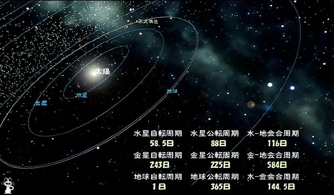 金星自転周期 243.02日 金星公転周期 224.70日