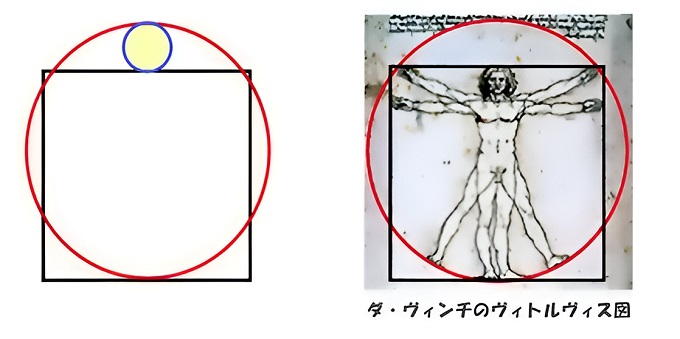 ■27■ダ・ヴィンチは自身の人体解剖の知識を元に、人体比率に強い関心を持っていた。また彼は人体の機能は宇宙の動きと関連していると言う強い信念を持っていた。この作品は人と自然との融合、そして芸術と科学との融和を標榜し続けた、ダ・ヴィンチの試みの基礎となる象徴的な作品だと言われている。