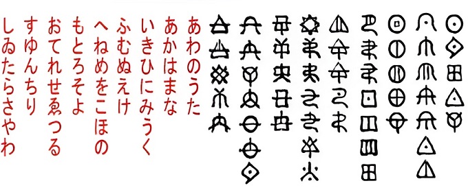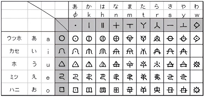■20■日本語の自己他者問題は大和言葉の「我」と「汝」つまり「わ」と「な」と表現した。この音は日本語50音図のあ段の第5行<な行>と第10行<わ行>でもある。『ホツマツタエ』は「ほつま文字」で綴られた一万行に及ぶ叙事詩である。その中にアから始まりワで終わる日本古来の48音を示した『アワのうた』がある。