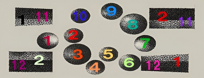 ■7■世界は12で閉じているが、1と2は別枠として10で世界を括ることもできる。音楽におていも、ピュタゴラス音階もしくは中国の三分損益法における2:3で見出した5つの全音の他に2つの半音が3:4で見出されるが、転調・移調可能な12音階としてみると10+2の多重構造としても世界を把握する。
